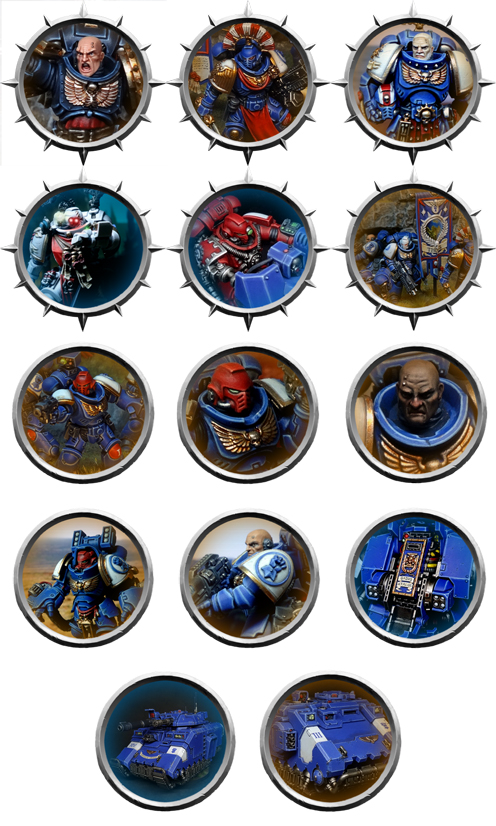 Being a very visual person, I wanted to have a portrait of each unit on its card since that just makes it easier for me mentally. Luckily I already made a bunch of portraits when writing the wiki page where I store the army's lore, so I jammed those in. Here's all the portraits together: