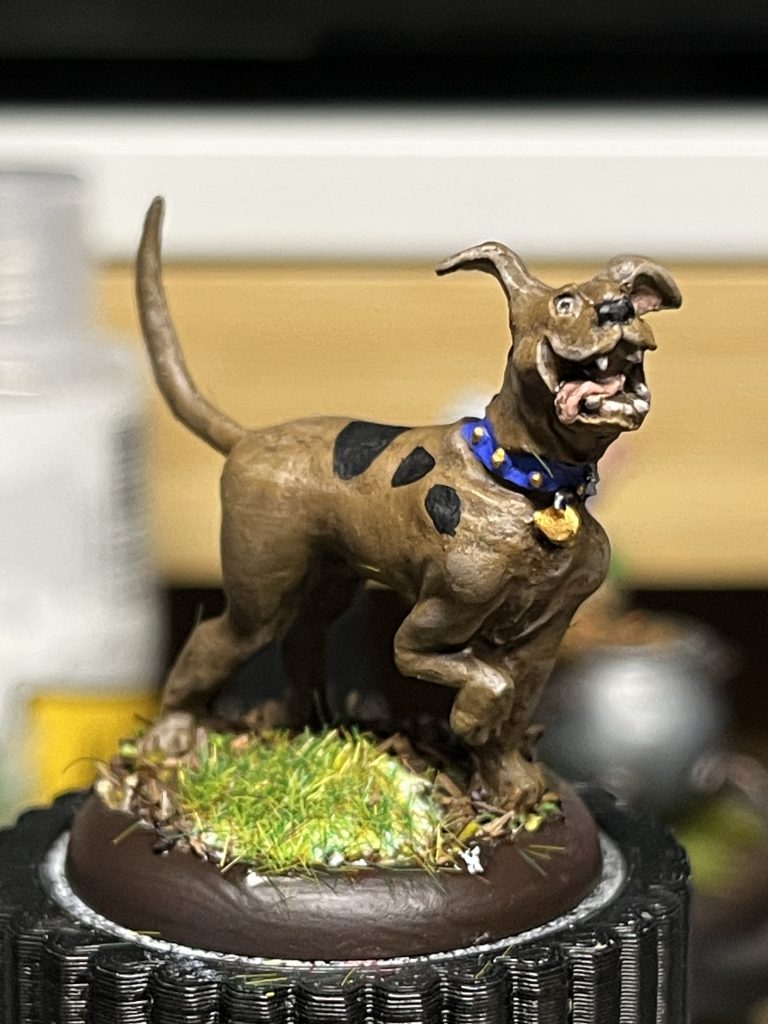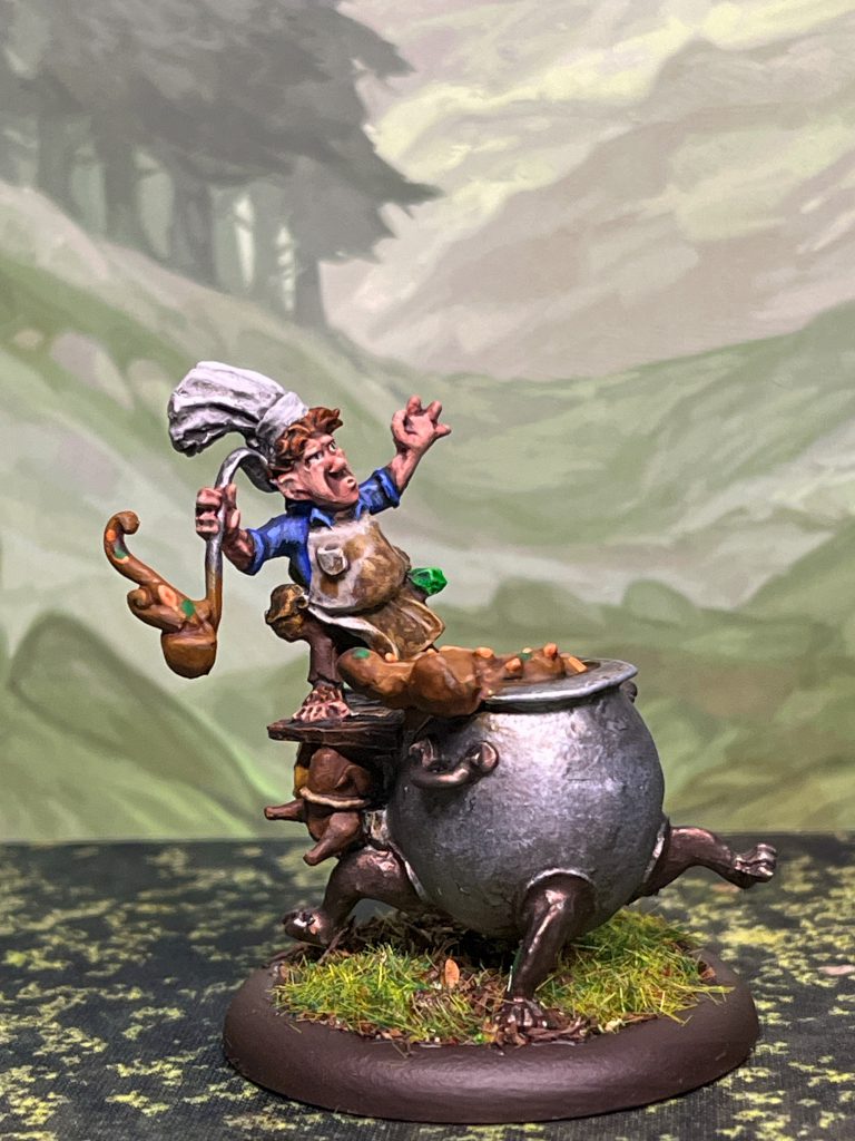 And then started on the second warband, Halflings! With a chef (the warband's way of casting magic) mounted on a walking cauldron, naturally, and a TrollHound painted up like everyone's favourite Saturday morning cartoon dog; as soon as I got a brown coat of paint on him I just
