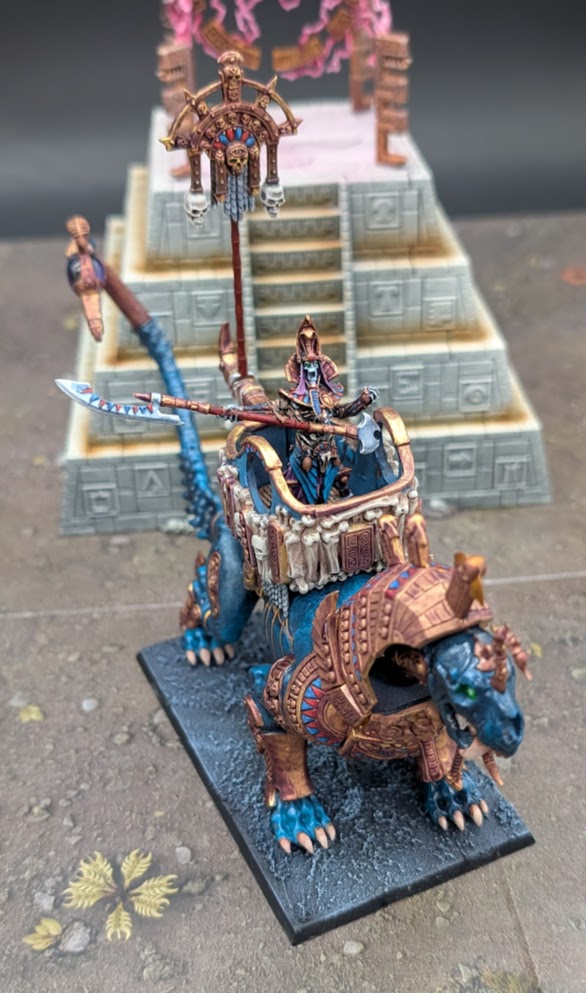 Having loads of fun painting that, I decided to again visit the world of silly Tomb Kings miniatures by getting another Settra the Imperishable and putting him on a Khymerian Warsphinx: