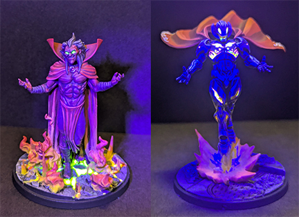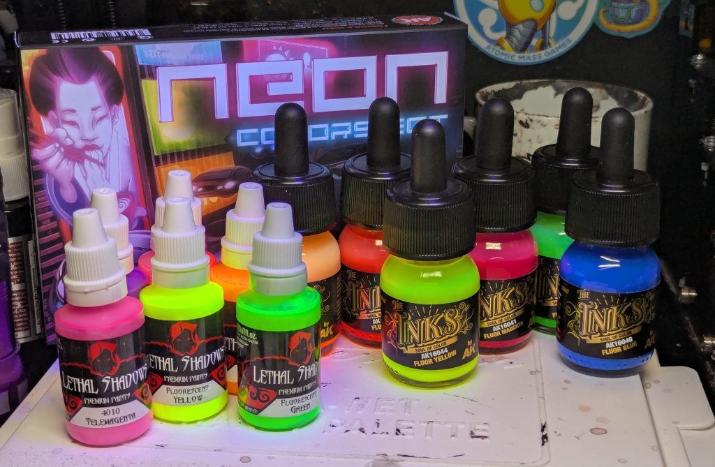 This month, I've been hooked on cracking up vibrancy in my painting. I had gone to Adepticon with one goal in mind, and that was to buy a bunch of neon paint colors. Last year, I had purchased a neon paint set from AK Interactive and it has done a lot of work for the spell effects in my Marvel: Crisis Protocol miniatures, but I wanted more. So I did some searching and not only picked up another neon set from AK, but also their fluorescent inks and a bunch of fluorescent colors from Lethal Shadows.