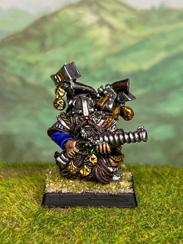 Hell yeah, I beat Rockfish this time getting my stuff in. Also all the other incredible painters we have that are really hard to follow up. After a couple months of being slow, and some travelling, I've been back-on-it at my desk slapping paint onto models. Starting with a second Anvil of Doom for my Old World dwarf army (mounted on a 60mm which is the correct base size, come @ me with your "base size N/A" arguments) and two more characters: an engineer with handgun standing in for a Thane with the Good-Runes until I can buy the resin one and a younger stand-in for Burlok cause he rules. This is my second Anvil of Doom and I'm very happy to be able to have one of each of this incredibly cool model. Even managed a game with all of these against Reece's Bretonnians (you may have seen his Bretonnian guide) and thanks to some lucky rolls even won! Hell yeah dwarfs.