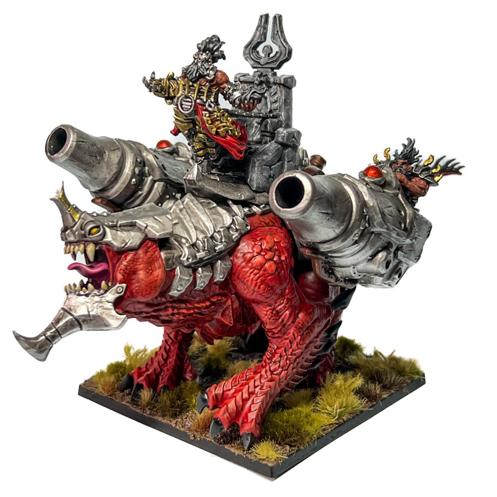 Lastly two much larger models: the new Stoneforged and a Hellbringer Drake from Conquest The Last Argument of Kings. If you're not familiar with the game these are for the Dweghom faction which are sort of like dwarfs but more like chaos dwarfs. That's why I'm painting them like chaos dwarfs. Plus black, red, and gold is a kickass scheme that always looks good. Simple as. The Stoneforged has only just come out and it really shows in sculpt quality and how easily it went together compared to the Drake which was a lot more work to build. Lastly managed to finish off the Ironclad Drake as well so that I could play my event games with all three big beasties. It ruled and I went 2-1 which I was