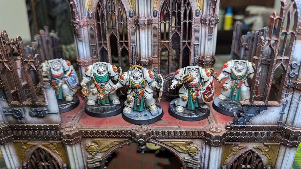 Amici Optimi as an idea to do an all-characters Auric Champions list for Goonhammer Open last year, but that fell through. I finally finished these folks up this past month. I may still press on with my plan, because the idea of a 13 model army plus a Venerable Land Raider painted to look like the Hall of Justice is hilarious to me. Probably