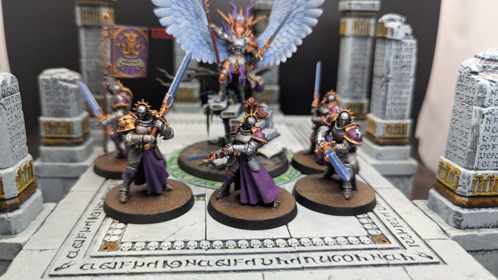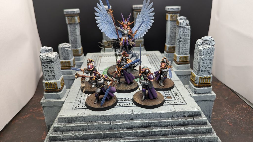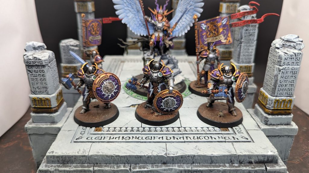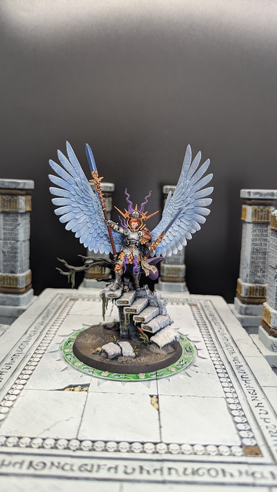 While at SDCC, I decided that I would spend my downtime doing one of two things: Indulging in my Hotel's waterslide, and painting Yndrasta's Spearhead. Yndrasta is the coolest model in the Stormcast Eternal range, in my opinion (1), and I like Spearhead, so this was a logical choice. I went with the Blades of Dawn Stormhost, as there is a relative dearth of these minis around, and I like the combination of rich purple and rich gold with cold, weathered steel. This would give me a new Spearhead to play at NoVa or the Grand Narrative.