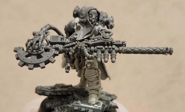 In a similar vein, because I'm aiming to try a Rad Zone Cohort list with Dragoons, Disintegrators, and tons of midboard punch, an Enginseer was on the menu for conversions, as outside of SHC it's not possible to grant Feel No Pain to relevant vehicles. This Outlands Beastmaster clearly prefers the company of machines to gribblies now, and given I didn't actually have an axe, an angle-swapped and shorted Manipulus staff made do!