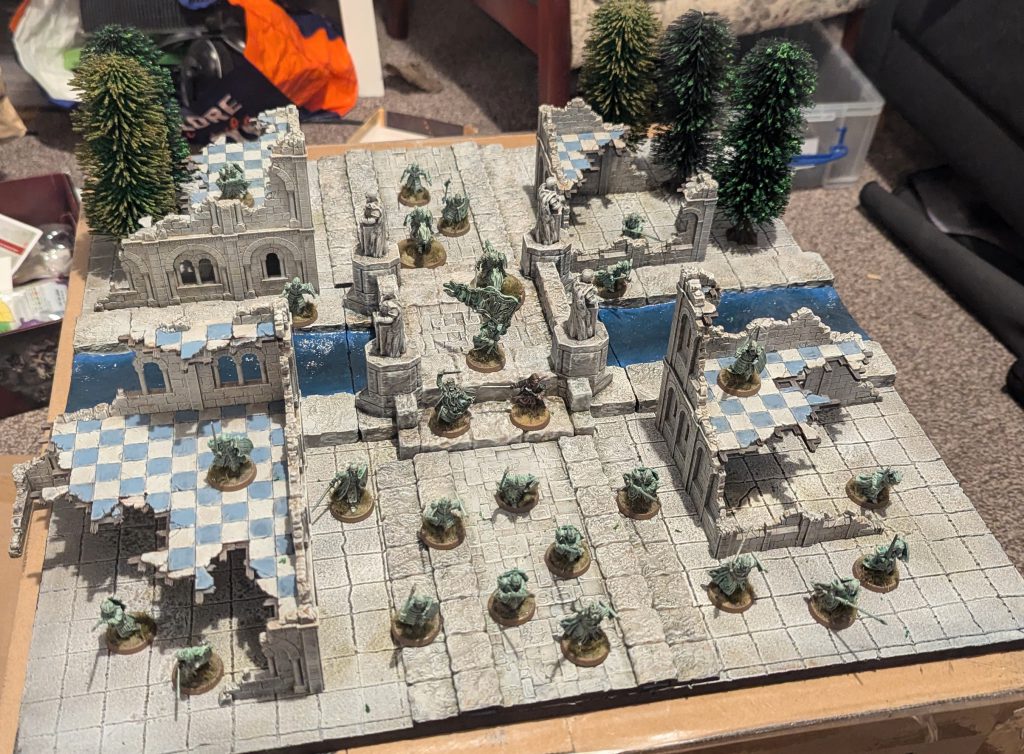 Adding in the Games Workshop Osgiliath terrain and some trees, I think it makes for a nice Osgiliath board and a suitable home for my Return of the King legendary legion. I didn't end up winning, missing out to a