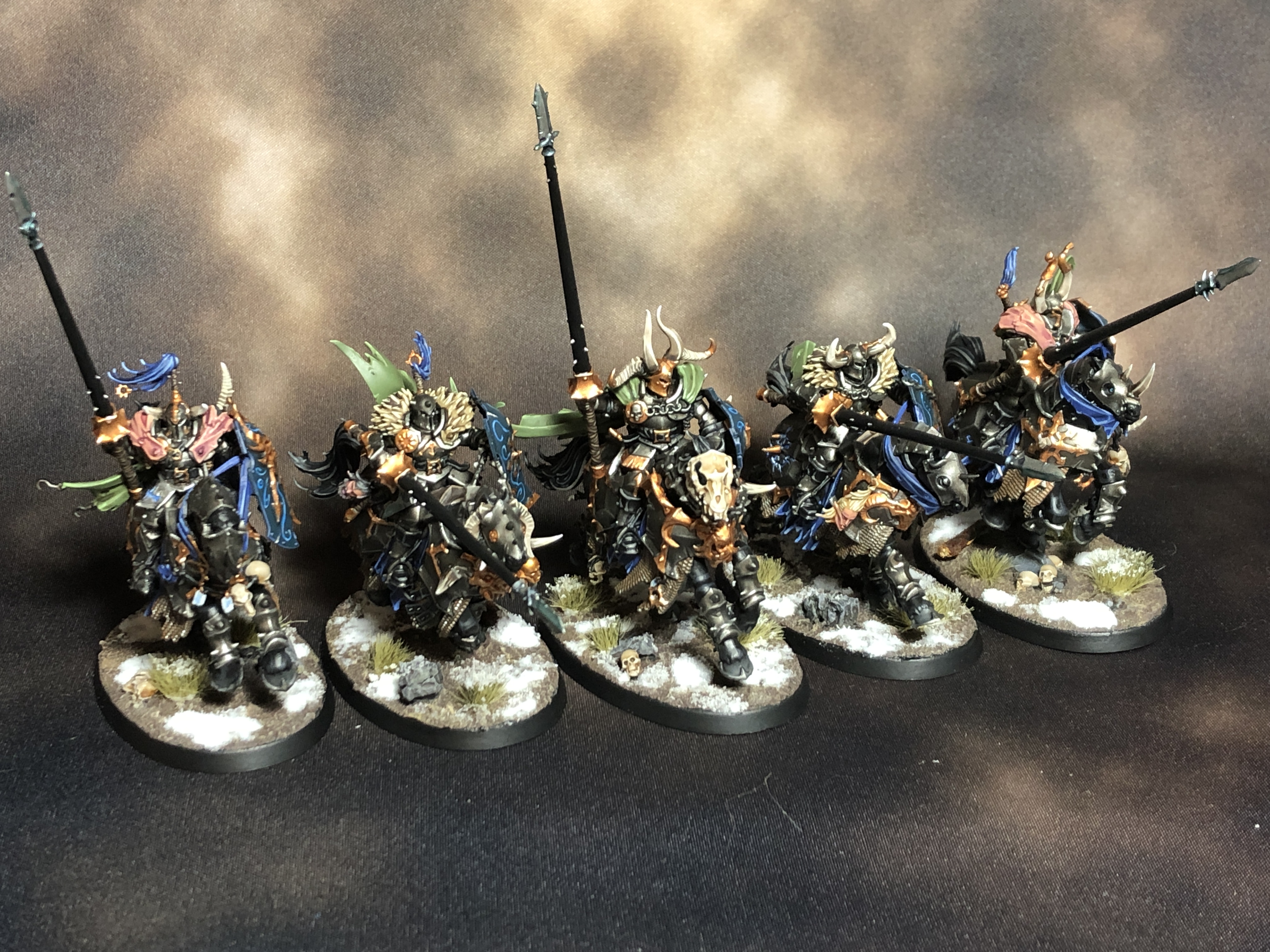 I've decided that in 2020, My Bullshit is "hard to paint dudes ft. horses" and oh buddy, am I on that bullshit. I've followed up last month's Chaos Chariot with the absolutely gorgeous new Knights of Chaos from the Start Collecting: Slaves to Darkness set. While I absolutely love how they look, they were what I would call "paint averse" as they can't easily be built in subassemblies and there's tons of overlapping detail and little baubles hanging everywhere. I am happy to say they're finished though, and my poisoned brain has decided it wants more.