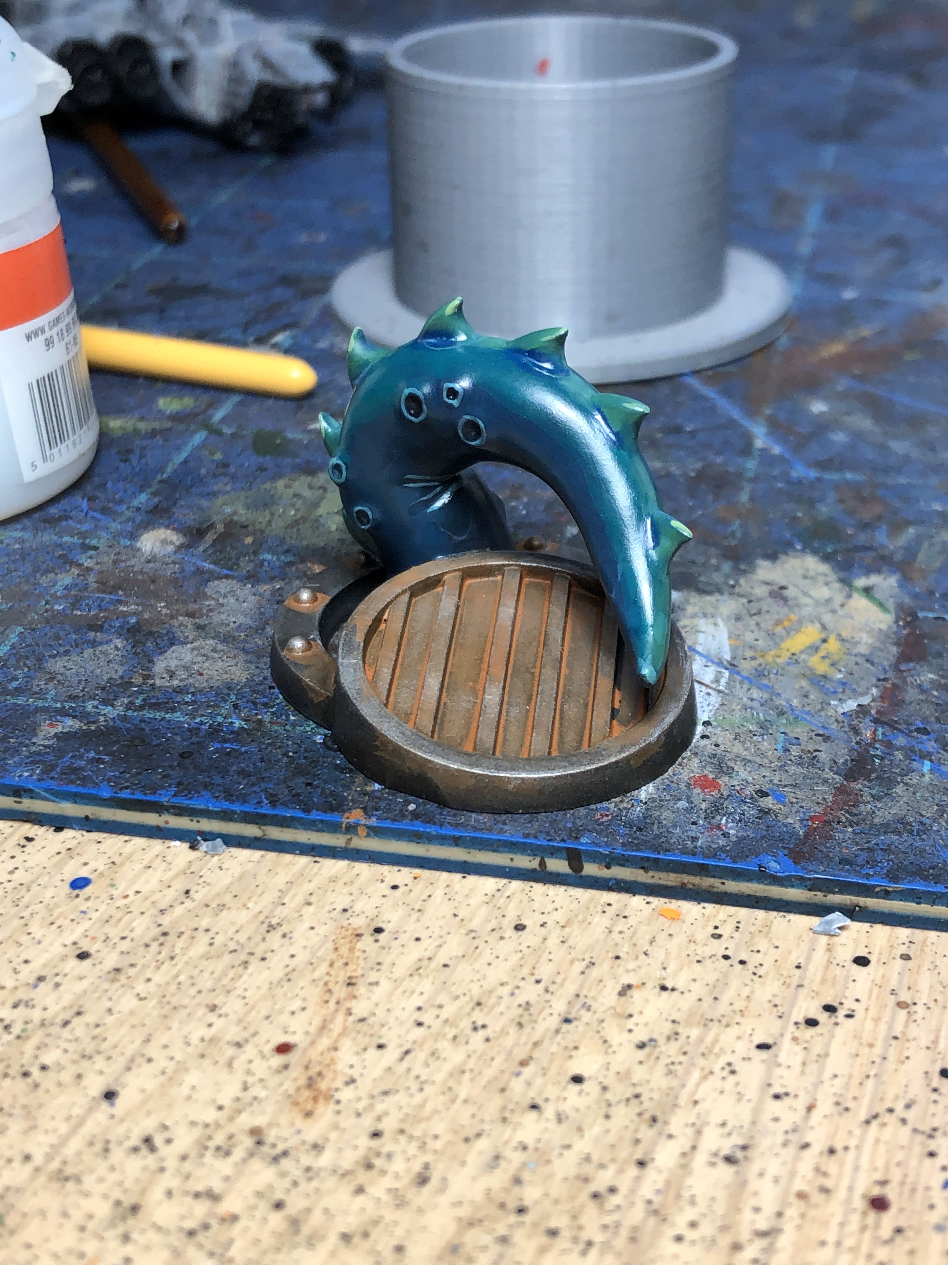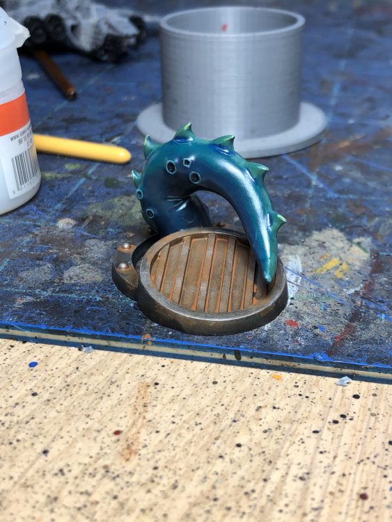 I closed out the month with The Good Shit, by which I mean Necromunda. I'd had this beast lure lying around since I got the box set, so I hashed it out using the already mixed greens and blues I'd mixed for my main attraction. One coat of gloss varnish later, and I had a slippery looking tentacle to completely own any ganger dumb enough to walk near it: