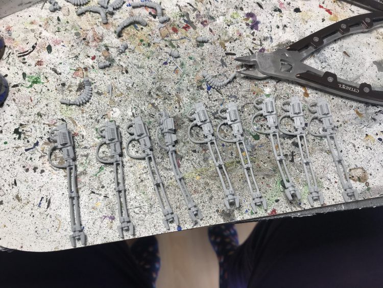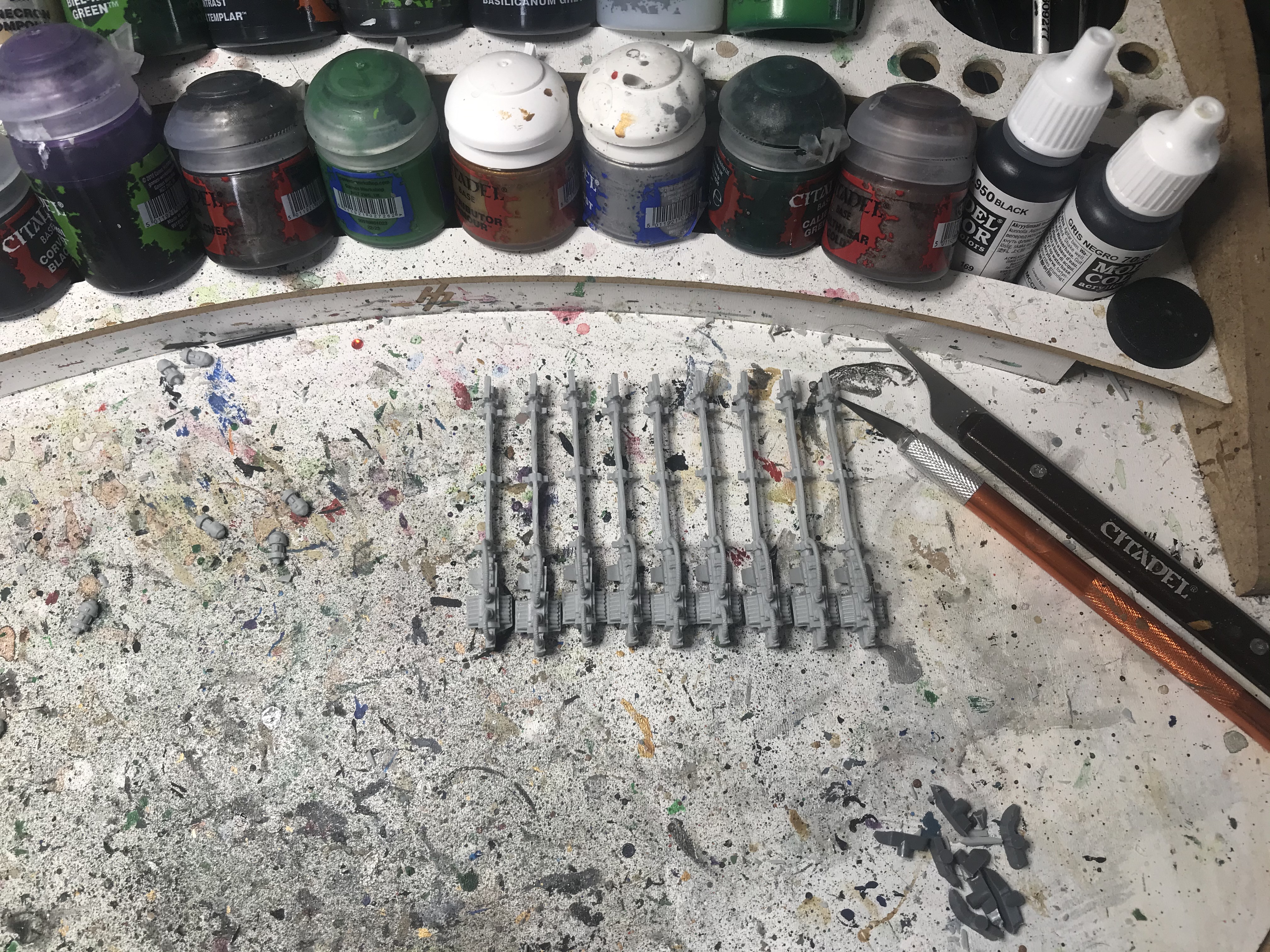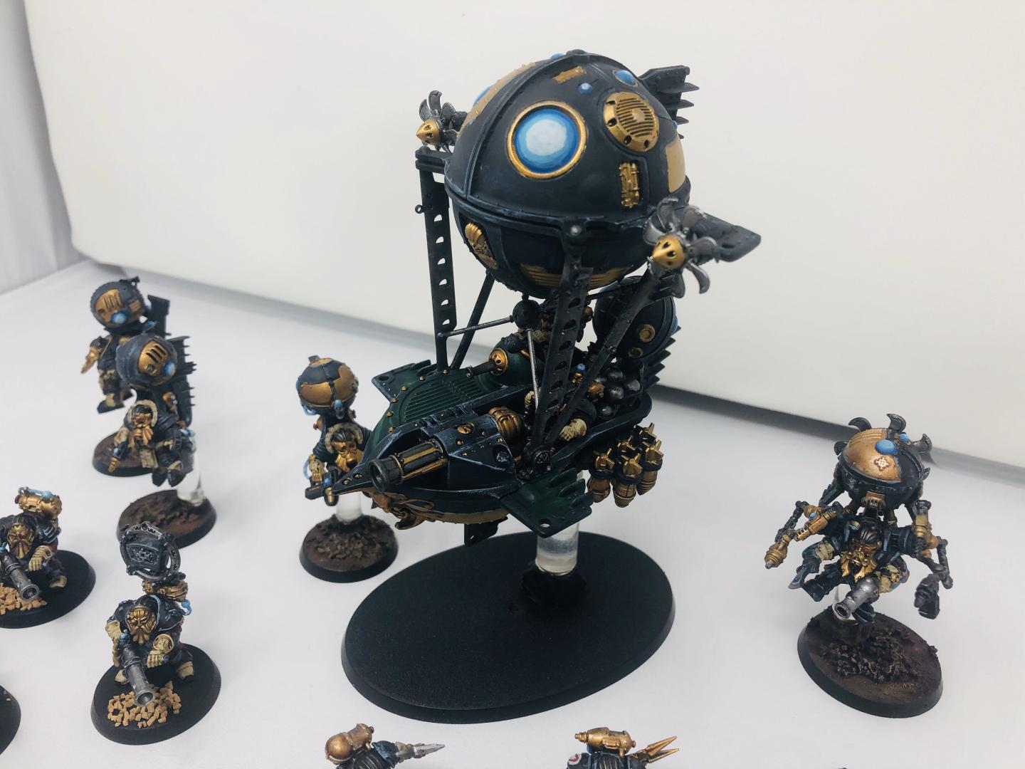 The body canopies are done, as is all the silver, so all I've got left on these is to add details on the bodies (black chestplates with green rune, green eyes, Balthasar Gold headpieces and glowing green cable) and do the guns, which I'm planning to (on top of Chaos Black):