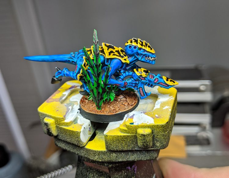 This is the Kroot model I painted for the How To Paint Everything: Tau article. I originally wasn’t going to participate but when I saw some of the fun stuff Kroot got in The Greater Good book I had to paint one of the carnivores I still had on sprue. It was nice to be able to focus down on a single Kroot and really work the leather.