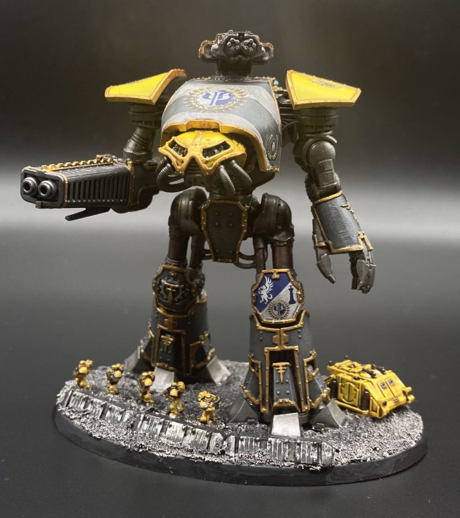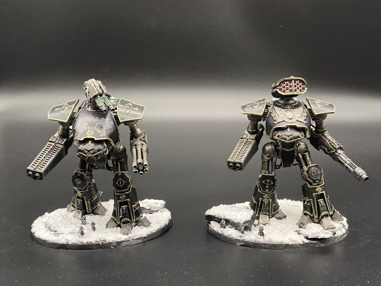 I painted up some Forge World knights for Titanicus over the past fortnight, which reminded me how much I hate painting the paint scheme for House Vornherr until they are pretty much done. I managed to push on through and got to try out masking fluid for the first time - interesting but did have a bit of seepage, not sure how much I trust it but will give it another shot. Next month I've got a new Titan Legio to start, which I am very keen to get started on.