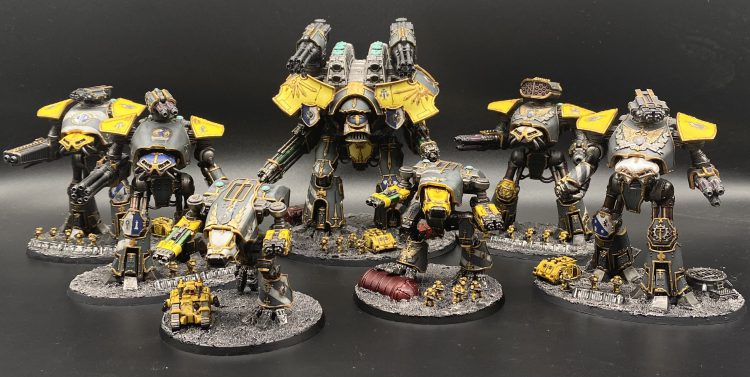 Work had been pretty slow the last 2 weeks, and I work from home so decided that when I wasn't actively working I would be painting, which meant I was getting minimum one Titanicus Ttian done from sprue to completed per day, usually within about 10-12 hours from beginning with time for glue to fully set and texture paint to fully dry. The only exception here is that the Mordaxis Reavers were done together in a day as well as the Warhounds were done as a pair in a day. I restarted my Gryphonicus having first done them when the game first released in 2018 but having gotten to be a better painter since then, as well as doing up 2 Mordaxis Reavers, the only Titan class I had not yet done for them. My Vulcanum will soon be joined by a second pair of Reavers as well, but not started on those yet (expect them in the next roundup if I remember to post). All of these are done by hand (I don't own an airbrush) with help from spray paints, for a breakdown on the Gryphonicus check out the Warlord Wednesday article featuring Gryphonicus which I updated this past week with the newer (simpler) paint scheme. The best part though is obviously the tiny space marines which contrast is way too good for. This brings me to 21 painted Titans in total and only 4 left in the backlog (until I add more to the backlog...)