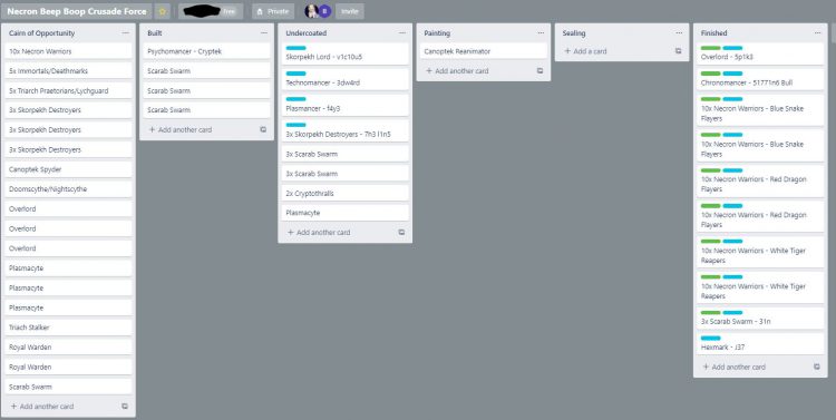 As mentioned last month, I slapped together amongst other things 30 Necron warriors for my February Slow Grow efforts. I also managed to build some terrain and not super glue anything to a desk for a change.