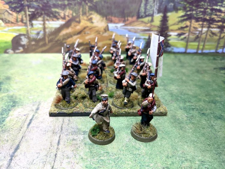 I had hoped to have more done this week but with the snowstorm and work stuff the Ungor raiders I am working on aren't done yet. To be fair there are 40 of them! I did finish up these American Civil War models from Sash and Saber / Perry Miniatures recently. I already have US Marines and sailors painted, as well as US cavalry. Now I have Confederates to match. The infantry are technically Tucker's Naval Brigade from Sailor's Creek, right at the end of the war almost at Appomattox. They were brought into the infantry when the war was going so badly that the Confederacy needed more troops.