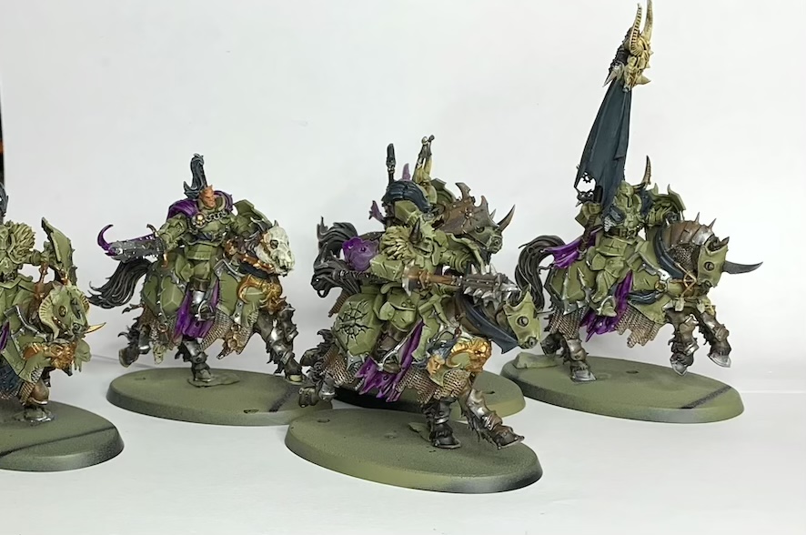 Some Knights that I never got around to completely finishing/basing, my arch-nemesis of painting is the horse, and finally for Nurgle for a while, the Lord on Karkadrak: