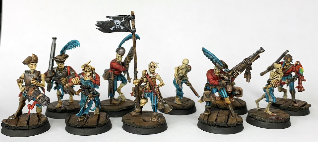Next up for the Mortal Realms are some Pirates, these are for a little project on the side that re-imagines factions for Age of Sigmar in a twist where Nagash won during the End Times, and the resultant Realms have an undead twist. My contribution to which is a faction currently known as the "East-Aqshy Terror-Raiding Company", complete with it's own Battletome that I've been making along side it.