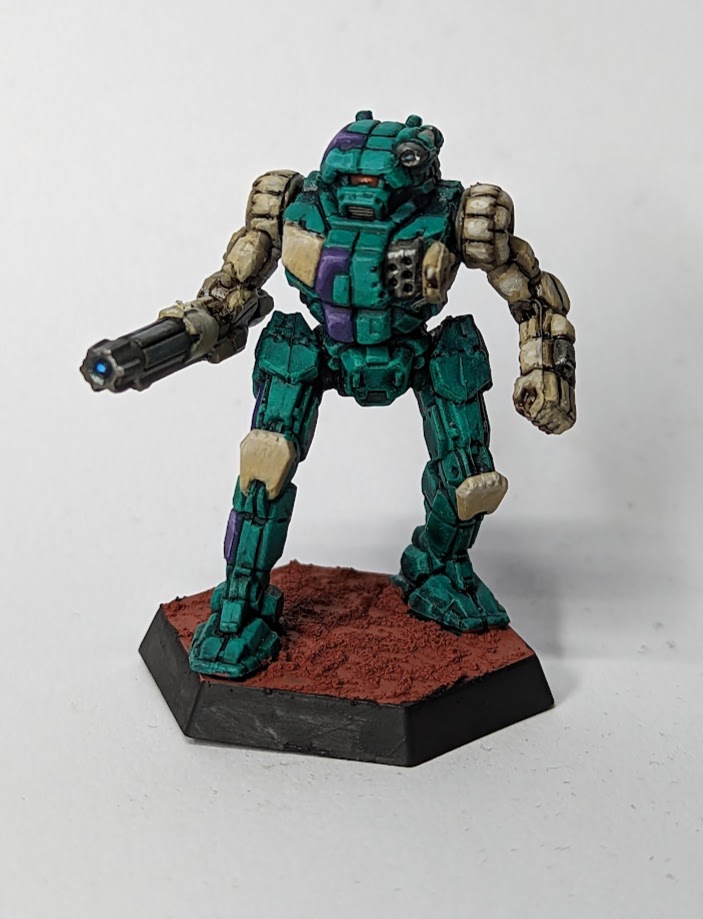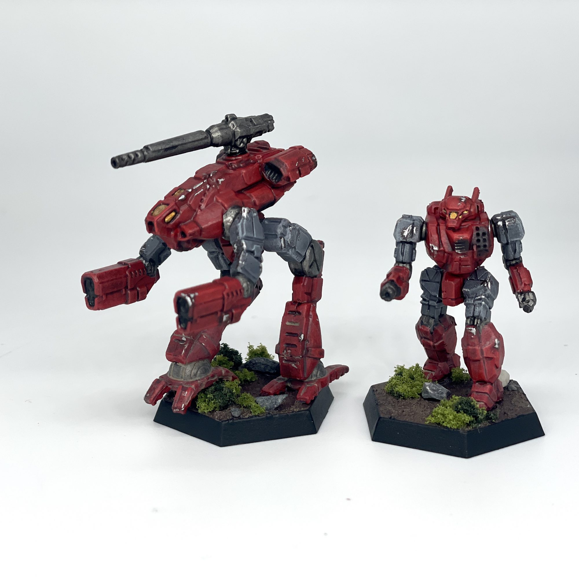 After a really good January in which I painted almost an entire 800pt Star Wars Legion army, I completely stalled in February. I was too busy attending the Vapnartak wargaming fair in York and turning forty, okay! I've been pulled into Battletech for the first time since the 90s and picked up the Beginner Box, which has rapidly become a favourite at my house because my partner and I can easily play one map games on the coffee table. The two 'mechs included in the box are the only painting I got done all month. I didn't have any real plans for these, since I'm intending to collect an ilClan period Rasalhague Dominion force, so I figured I'd paint them as random mercs for fun.