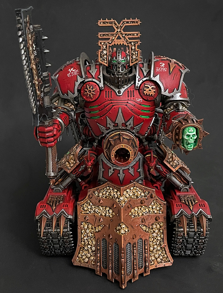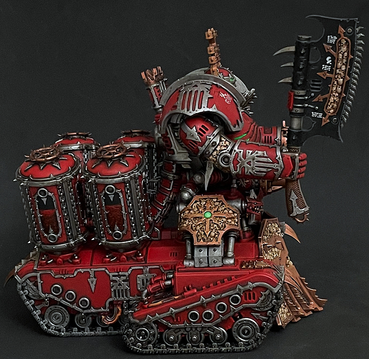 A Khorne Lord of Skulls is the backbone of this new army. Its assembly and painting were, how can I phrase this, NOT FUN. I am glad I did it but I am also very glad that it's finished and I don't have to assemble/paint the same large components repeatedly.