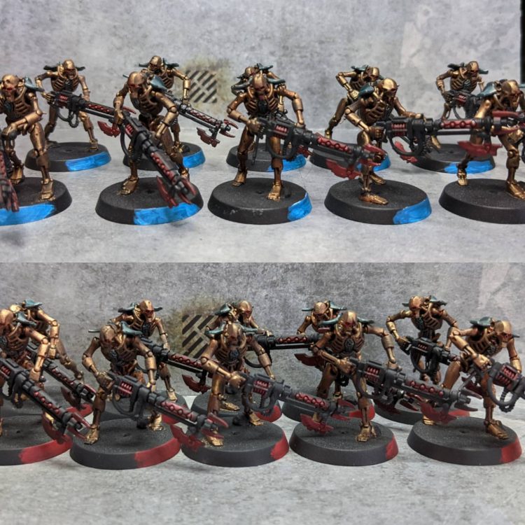 Mostly smooshing Necron Warriors and trying to take my time with my Chronomancer. I’m using black undercoats with the rank and file to give them a more tarnished feel and with the characters I’m using a white undercoat for a much brighter look so they stand out more.