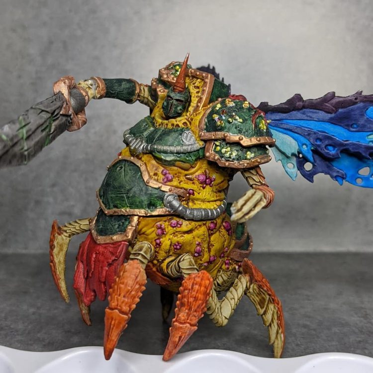 Stinky Steeve the Daemon Prince is at a table top ready state enough for my liking (it looks good 3ft away). There’s still plenty of work to be done and I haven’t even thought about what to do with his base. I will go back and add more details at a later date but other projects are clamouring for my attention.