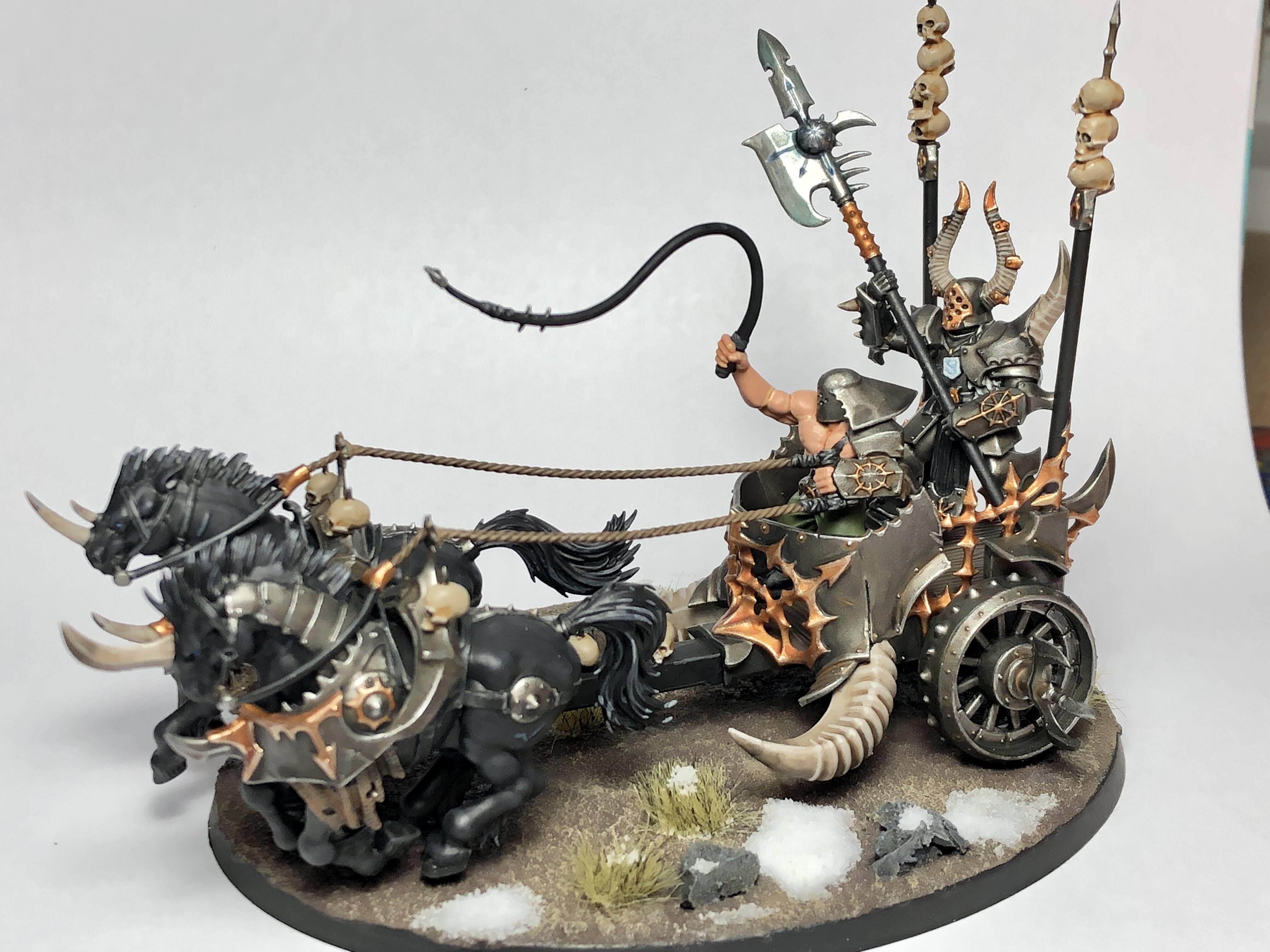 Lastly, the last model of Dumpster Year 2020 and one of my own personal hells, the Chaos Chariot. Round two wasn't so bad as the first; I'd left off the cape and some of the doodads that took so long on the first, and I was just more familiar with the model itself and what it painting it entails. Not champing at the bit to get a third one, but it wasn't so bad. I'm happy with how it looks, and all the new Chaos stuff being shown off has me pretty psyked for AoS in 2021.