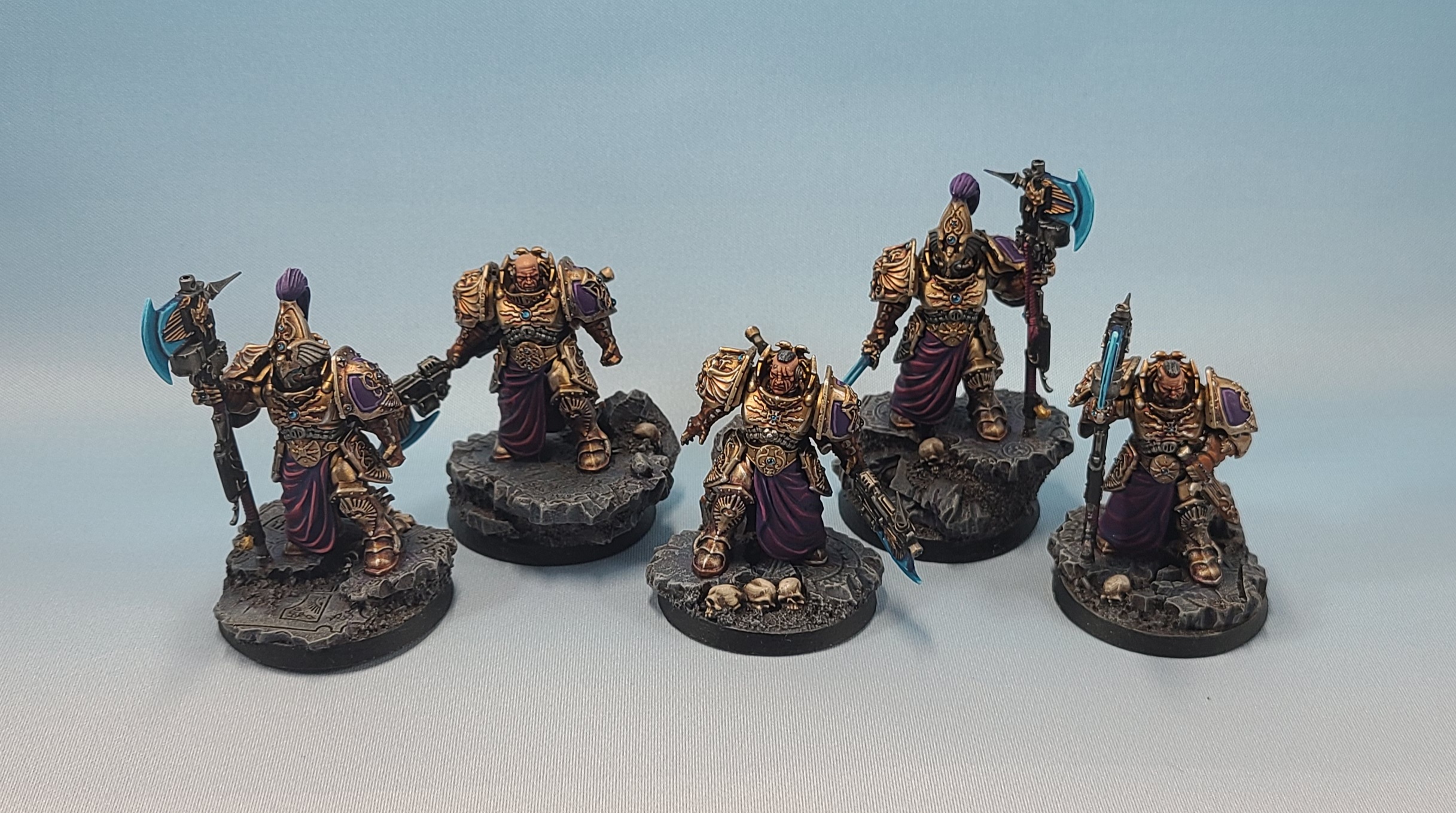 I finished my Custodes Wardens, although they may never see the tabletop compared to Allarus. I've been working on these guys on and off for about a year. You can learn more about how I painted them here.