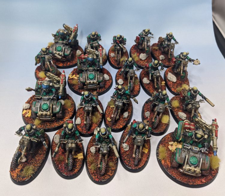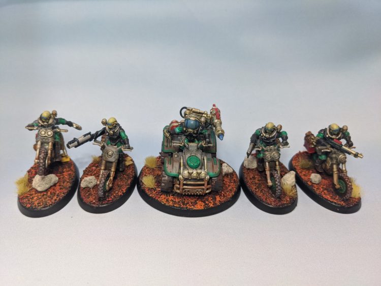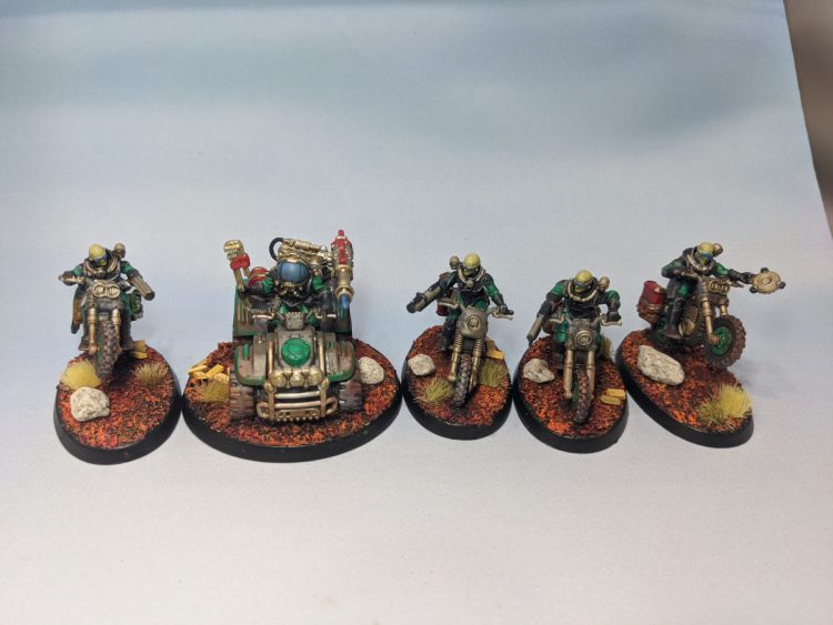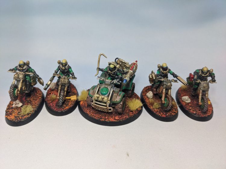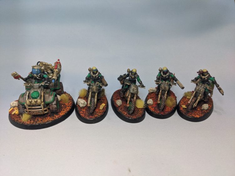 This past month I've been working hard on getting my Genestealer Cult newer models ready for 9th Edition. I have a ton of stuff painted for my GSC but just fell down on it when they released the bikes and ridgerunners. I've finished all the bikes I have (four squads of five), the last Ridgerunner I have to round out at three, and a Goliath Rockgrinder. I also painted the remaining characters I had to finish: a Locus, Magus, and Nexos. The only remaining units in GSC that I don't have painted are Metamorphs (press F) and Goliath trucks.