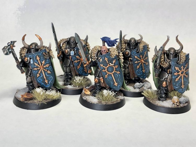 I went hard in the paint on old Warhammer Fantasy models this month. First up is a unit of 5 Chaos Warriors for my Slaves Daves to Darkness: