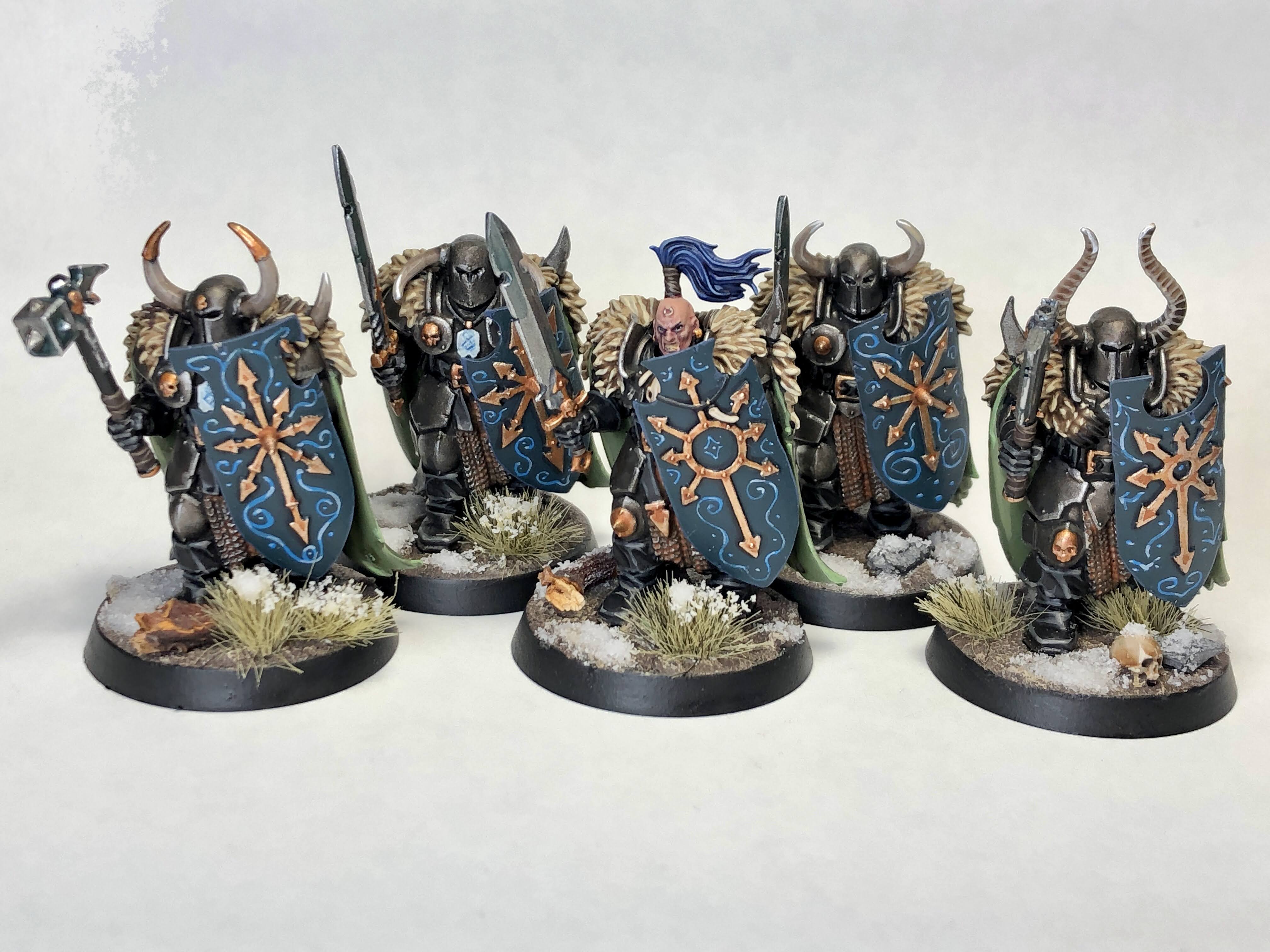 As usual for this army, I kept the armor and highlights simple, then picked out the fur as cleanly as I could and paid extra attention to the woading on their shields. They're just about the last models I've got in my spikey bois backlog, save for another one of those hateful chariots.