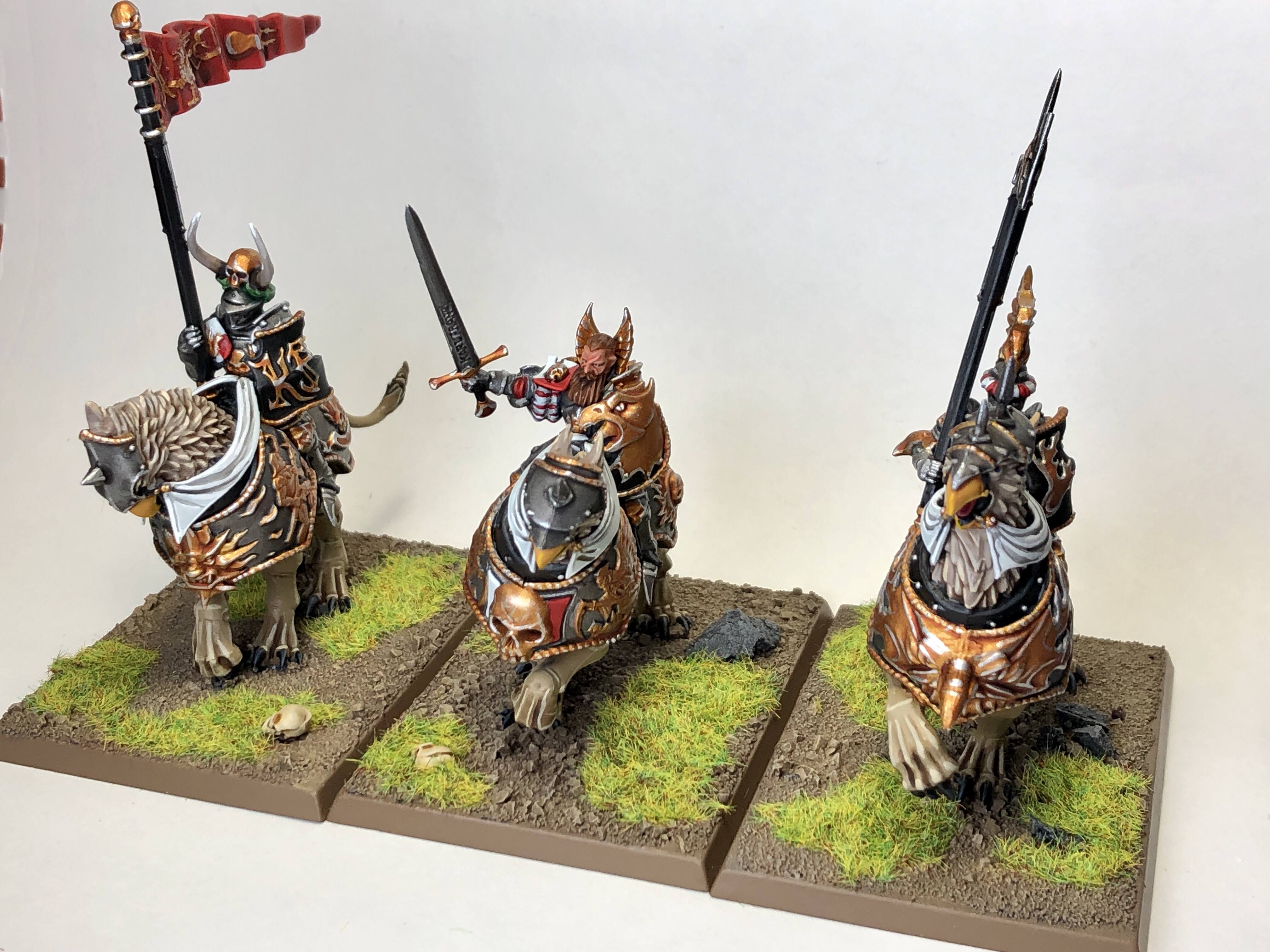 Last, but certainly not least, is a group of Demigryph Knights I built like 3 years ago. Painting them wasn't too bad - I went for something pretty akin to the old Empire Reiksguard scheme instead of the crimson of the studio models.
