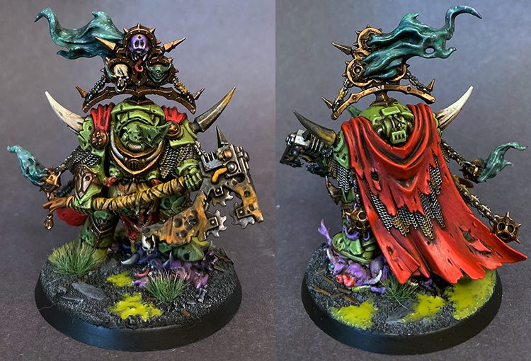First off was the Lord of Contagion, which is a great model and it's almost a crime I hadn't gotten around to putting paint on this thing until now. While I've leaned heavily on contrast paints for a few armies recently, I went "traditional" on these Death Guard to keep them in-line with my current scheme.