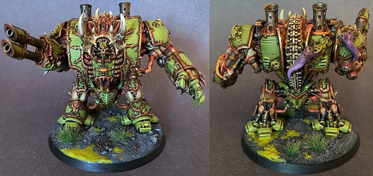 Now for a model that I've had sitting assembled and magnetized since 8th edition began: the "noble" Helbrute. Now with both Disgustingly Resilient and a slick reroll stratagem I can finally put this thing on the table without feeling disappointed.