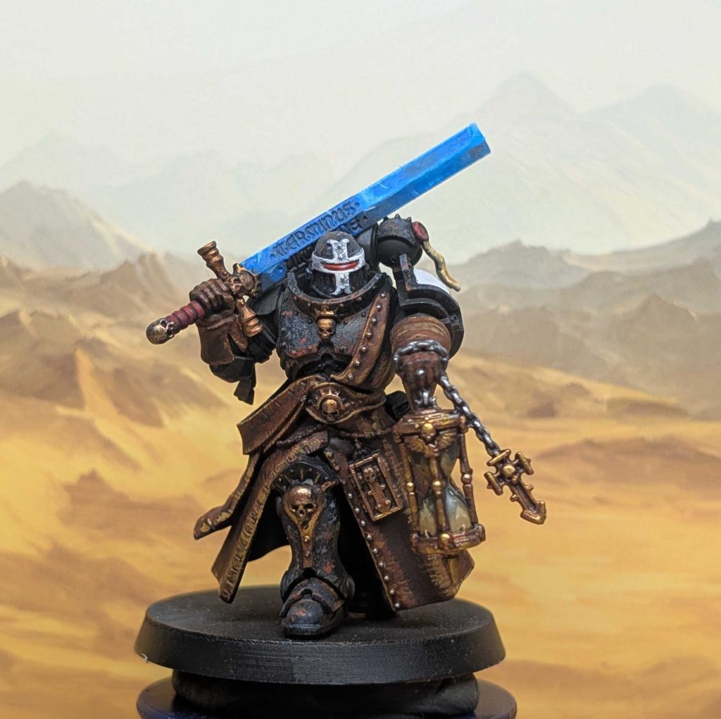 My Black Templar force is coming up close to 2000 (coherent) points, and I've finally gotten round to adding paint to my Judiciar who was sitting there primed since 2020. It was meant to be a quick paint-job to ready him up for a game the next afternoon and it ended up being one of my prized paintjobs so far, next to my Marshal.
