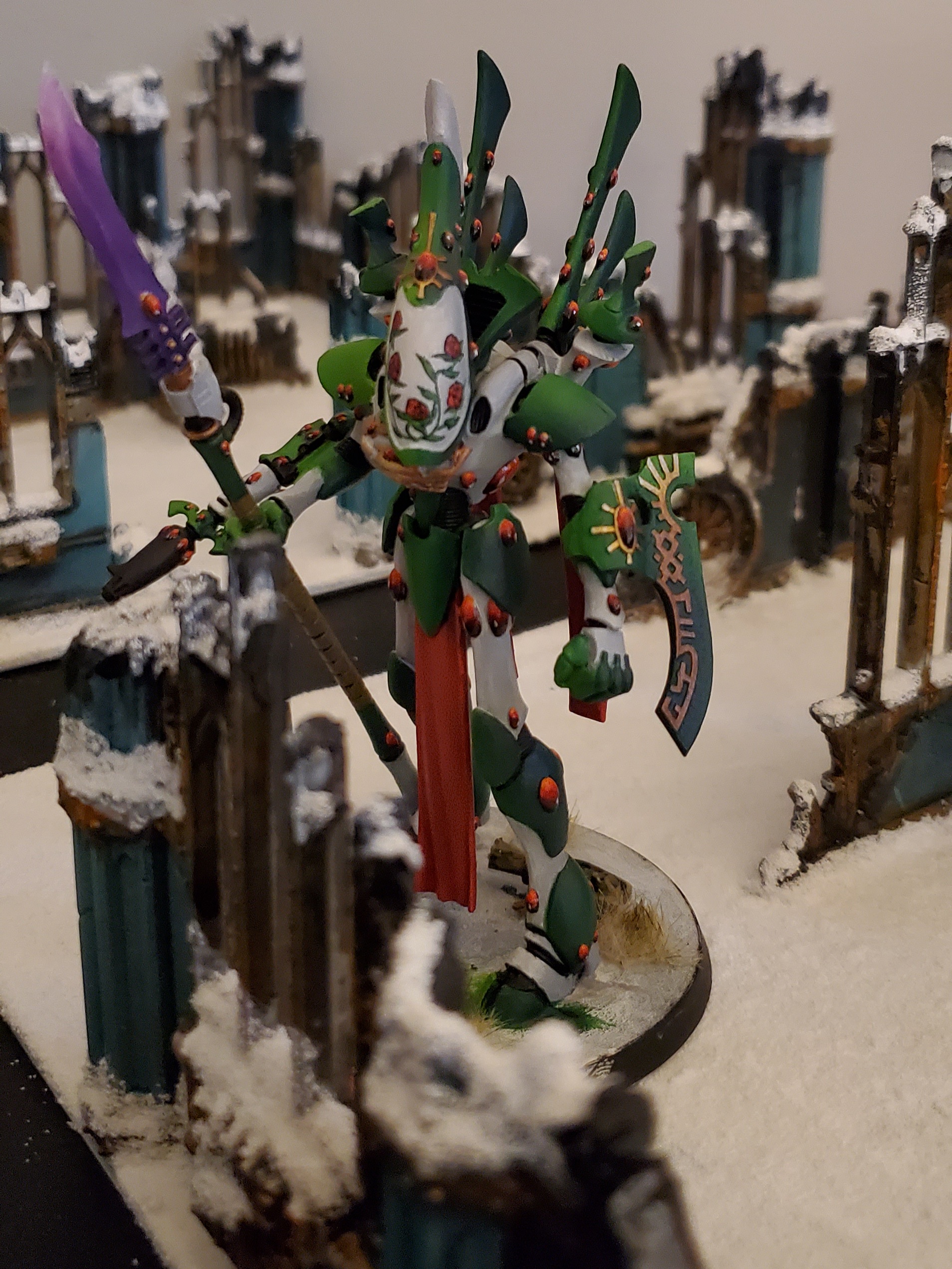 This month I've been continuing to clear my backlog of models and finished up a Starweaver, second Troupe Master, Farseer Skyweaver (replacement) and my second Wraithseer. I am happy to report that as of the end of this month I only have the 15 models remaining in my backlog: 1x Night Spinner, 1x Wraithlord, 3x Talos, 5x Wraithguard, 3x Vibrocannon, and finish a half-completed Crimson Hunter and Hemlock. I'm hoping to finish the Night Spinner, Talos, and Wraithlord in July.