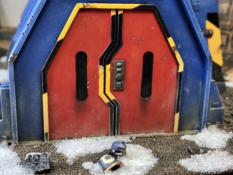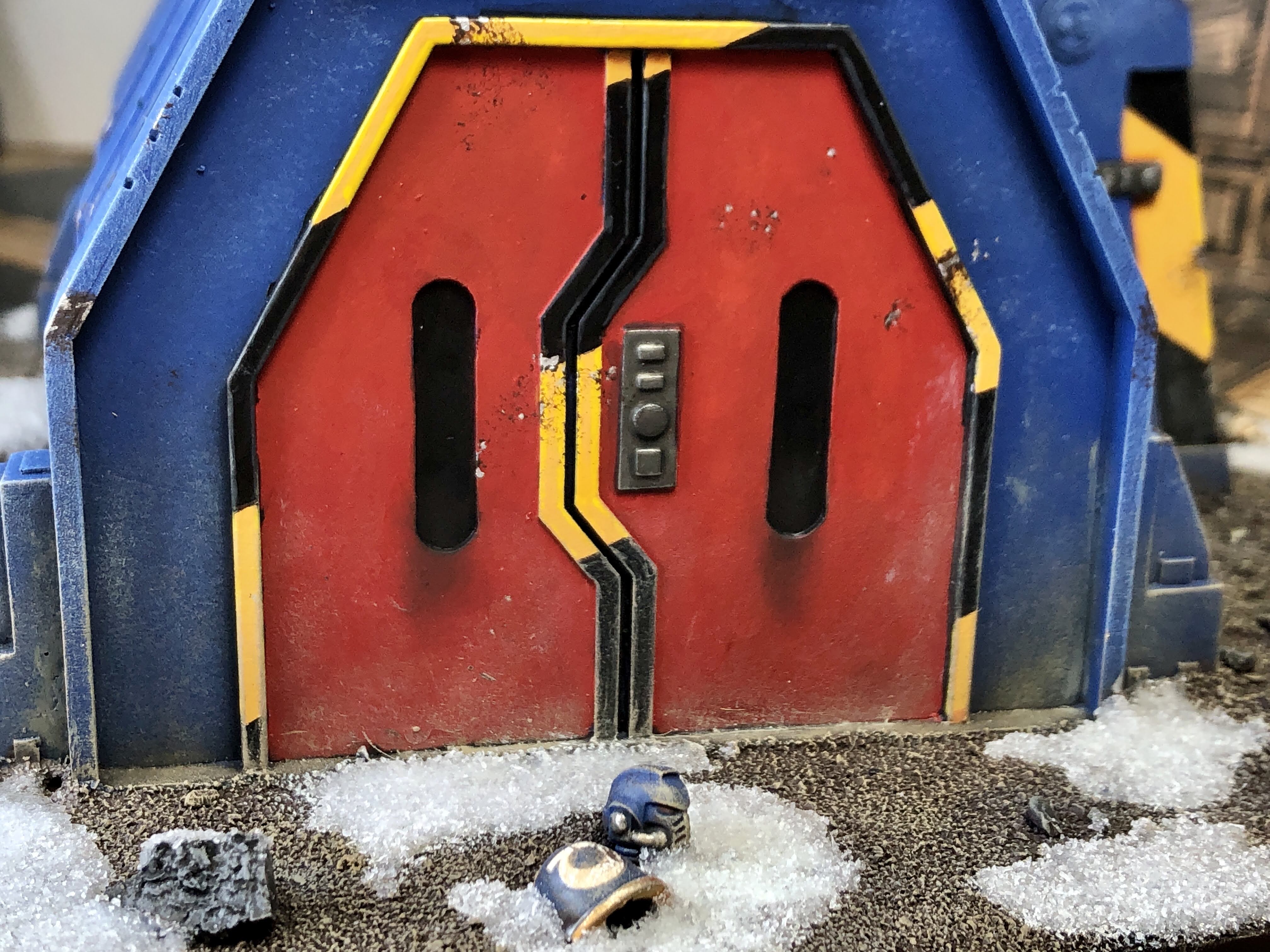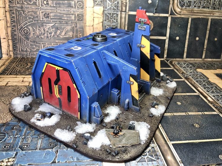 Last, but certainly not least, I turned back to my Ultramarines one more time before Indomitus comes out. I follow an incredibly talented hobbyist who goes by develain over on Instagram, and they had posted a beautiful recreation of the Dawn of War armory in plasticard and putty. They were selling a few resin casts and I had to have one! I reached out, and a few weeks later one showed up at my door. My buddy Dylan cut me a masonite base for it, and I (eventually) got to work!