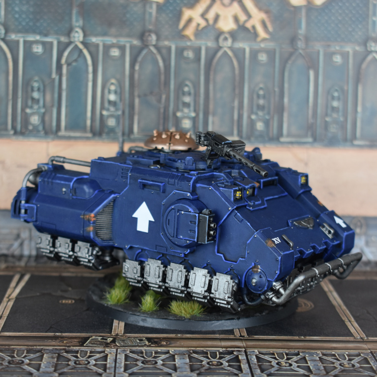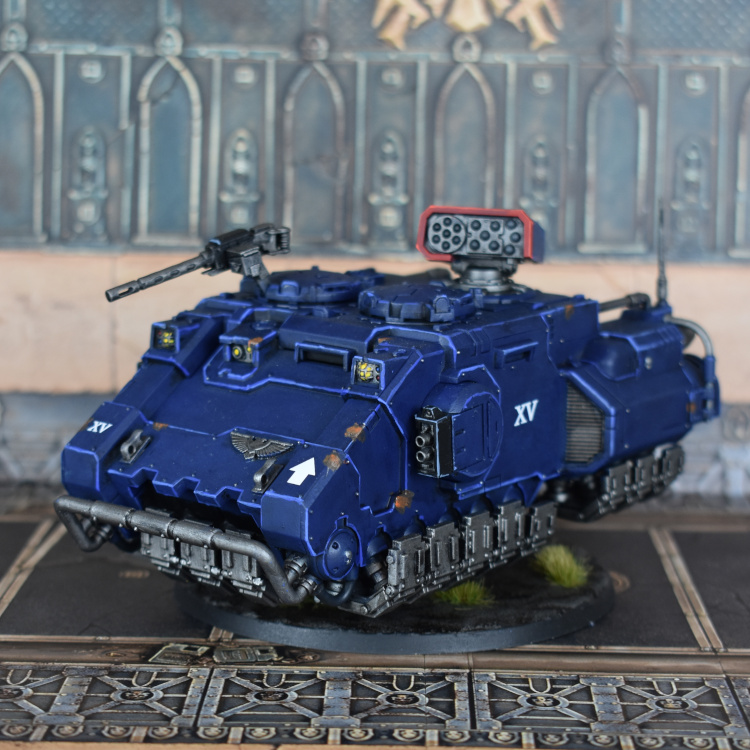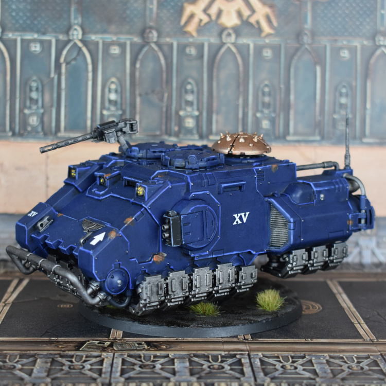 I didn't go quite as gaudy as it appears in Dawn of War, and I made sure it was suitably weathered without looking derelict.