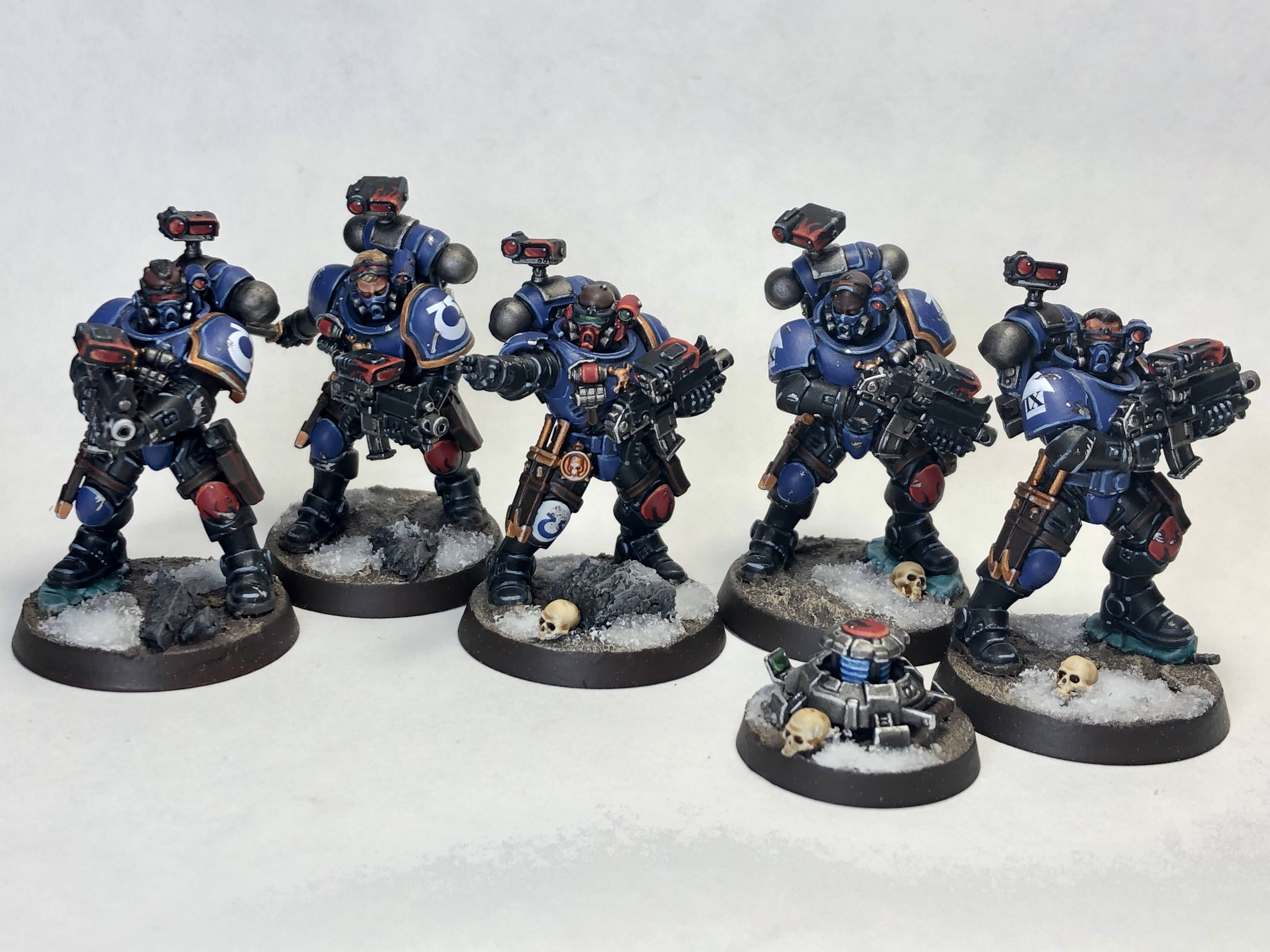 The original objective was to have a force consistently painted to what is, for me, a high standard. In other words, a showcase army. I'll definitely expand on these guys in the future, particularly given the new hotness GW just revealed, but for now I'll take a break from the thicc blue line and knock out some other bits of my backlog.
