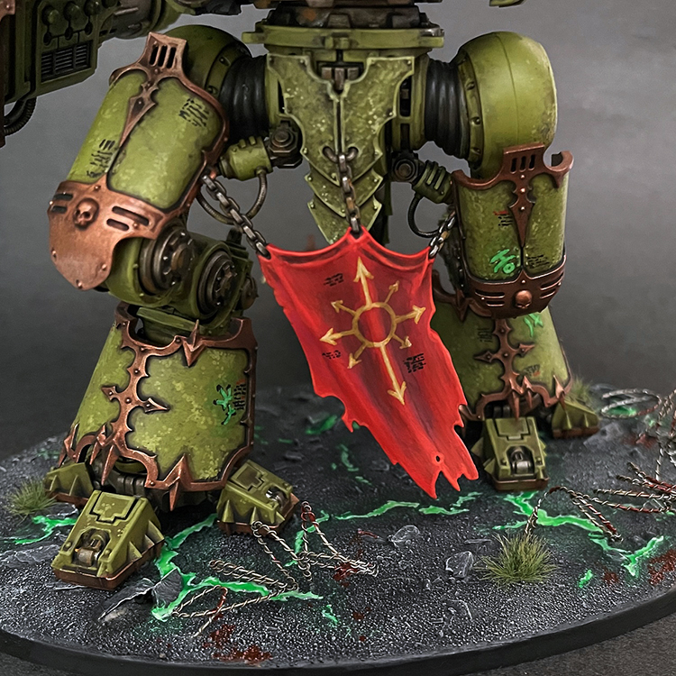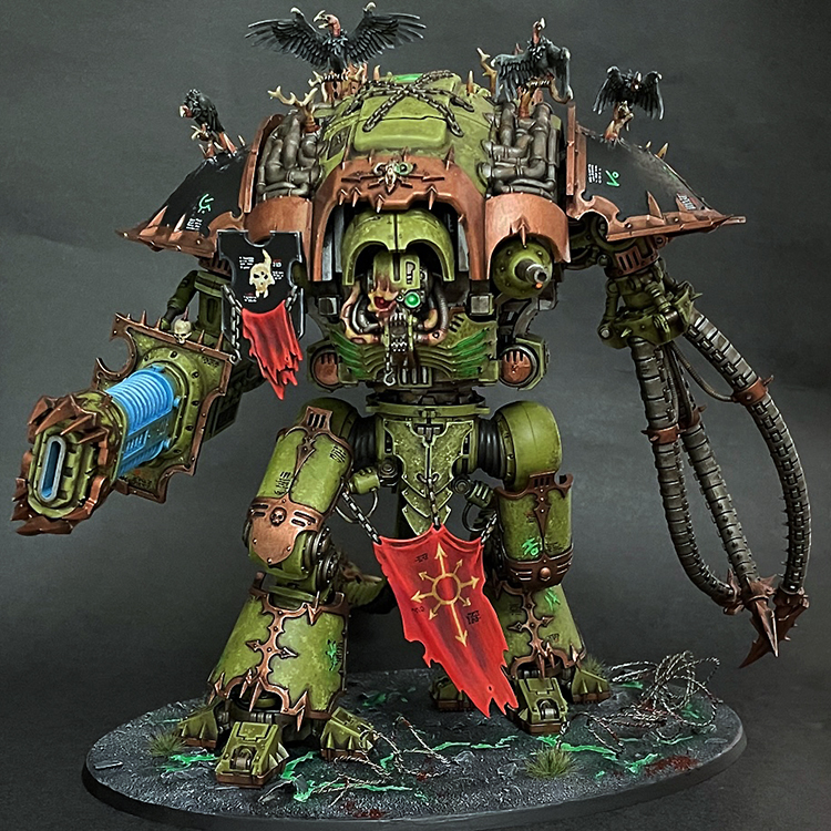 Painted to mostly match my Death Guard (to lean into either Nurgle or Undivided), the Abominant is my patron Chaos Knight because it does not have weapon options and thus does not require magnetizing. I am famously lazy about magnets, so this was a big win for me. For anyone interested, I'll probably have a hobby write-up on this model in the near future.