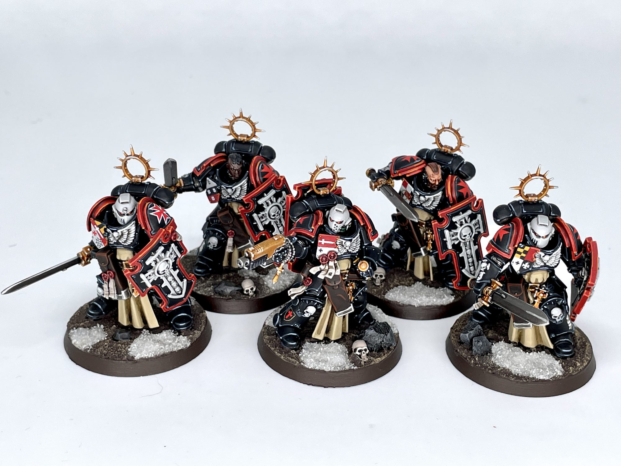 In my continued attempt to ape Booley's Seattle Open list, I've painted my second unit of 5 Bladeguard. These guys, much like the last batch, were a bit laborious but I had a lot of fun with the tilting plates. Painting stormshields is a real drag, and highlighting the inner edges and Indomitus cross takes a while too, but I love how they came out. These guys haven't really done anything on the tabletop yet, but I'm hoping they will soon enough.