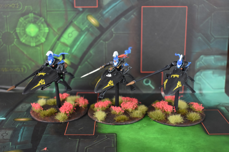 Some Shining Spears, with an Ulthwe colour scheme which is in no way about wanting to avoid painting a lot of white.