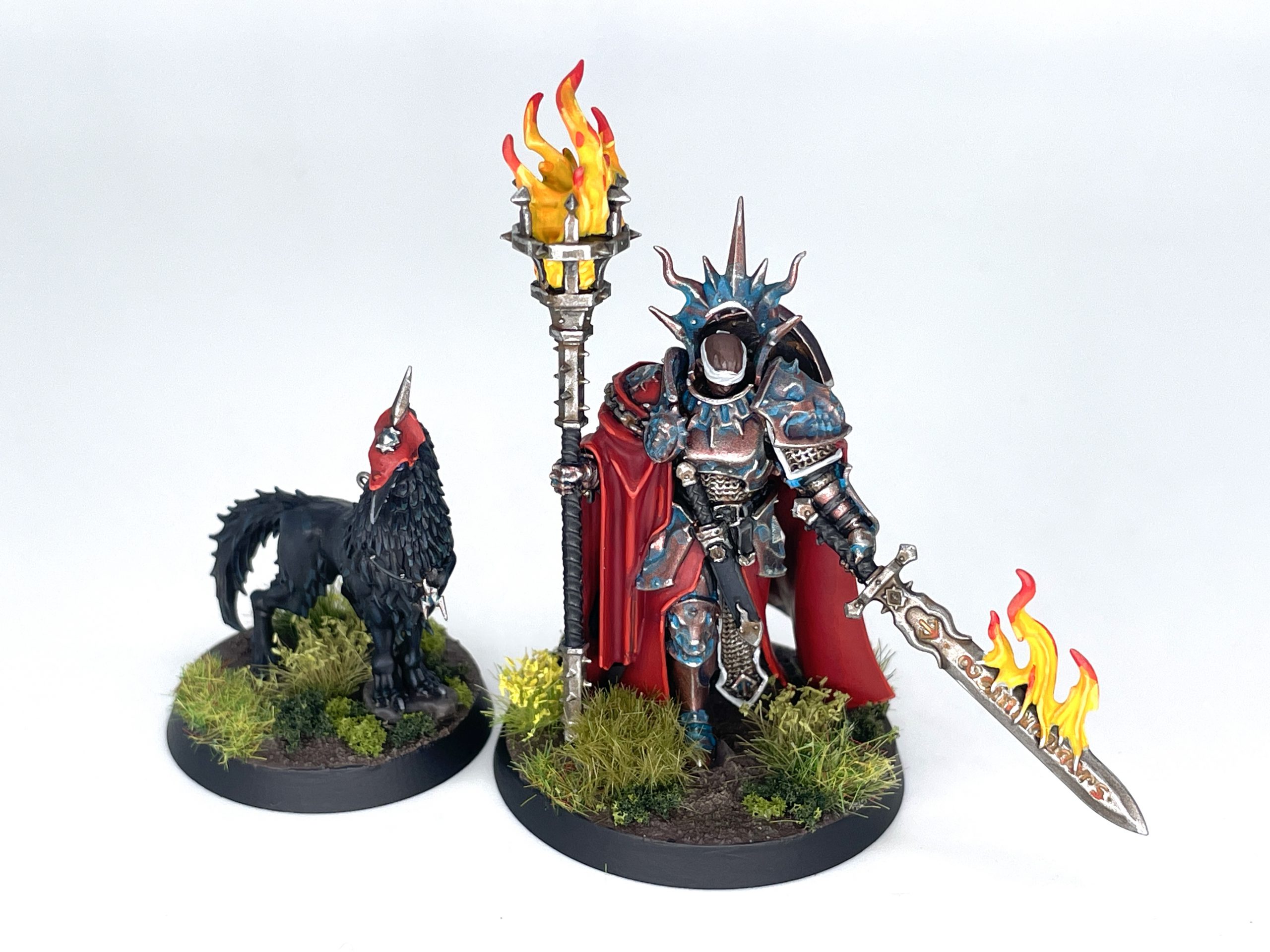I didn't have time to get much else done for embargo day, so I picked the Lord-Veritant and her little goth birbdog. The critter was a welcome reprieve from all the details and textures of typical Stormcast models, and despite my grumblings assembling the model, I did enjoy painting the Lord-Veritant. Getting real tired of fire over here though.