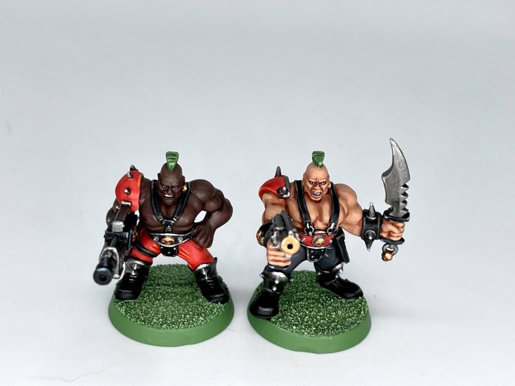 These guys absolutely ooze character, and have so many cool details and textures hidden throughout. They were deceptively simple to paint, even if carving the resin out from between each goddamn chainsword tooth took me an hour alone. Building them really wasn't fun, but painting them was an absolute blast. Next, I got right into the spirit of Goonhammer '96 week and knocked out some retromunda dipshits to really class up the joint.