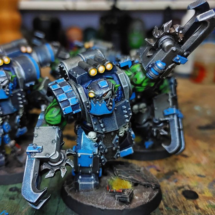 Meganobs are my auto-include unit in all of my lists. These 5 were a blast to paint and I can't wait to tackle the next 10. I really tried with my Ork army to make a scheme I could do quickly that still caught the eye well when the force was put on the table. I think that bright electric blue did the trick.
