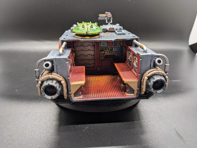 This month I have mostly been building and painting myself 110 points of go faster. When the zippiest thing in your 1800 point army is a Repulsor Executioner, capable of ten pootly inches a turn, you done cocked it as far as 9th edition 40K is concerned. Thus, a no-frills Impulsor: