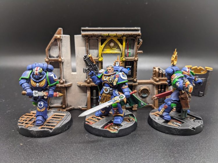 After painting Ventris and his two Lieutenants (I painted those in late February), I decided it was time to give Ventris some additional troops to command. So instead of buying a single box of Marines to build and paint, I instead went for alternate sculpts - I got the build and paint Ultramarines set, the Getting Started with Warhammer 40K magazine, and the 2019 Store Birthday Marine and combined them all into one unit. I took some bits from a few other units to make the Sergeant a bit neater.