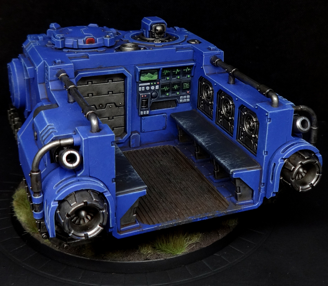 After having stained a few brushes blue, I decided to finish up a model I built and primed back in February: a second Space Wolves Impulsor! This one I think came out far, far, far better than my last one.