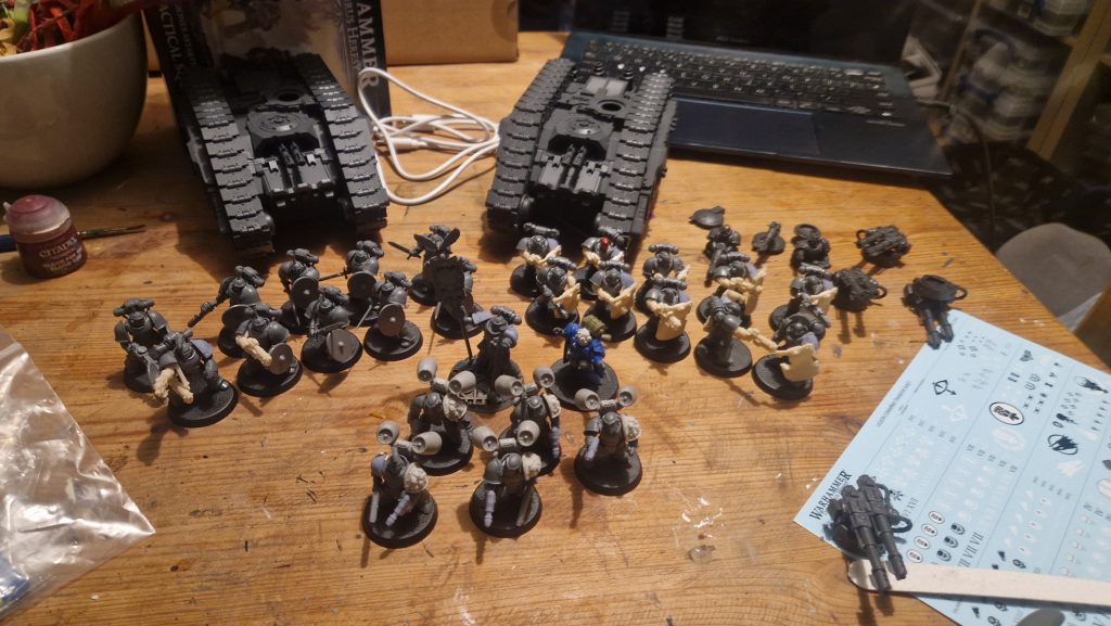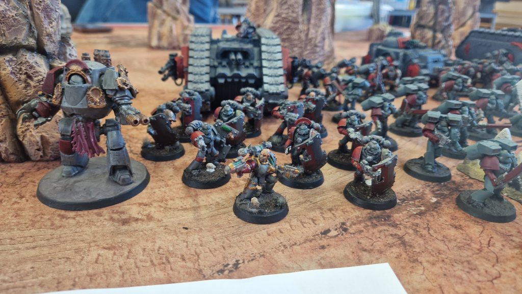Dusk Raiders by JellyMuppet. The full Loyalist Dusk Raider contingent, featuring an additional Predator, Dreadnought, Assault Squad and Recons.