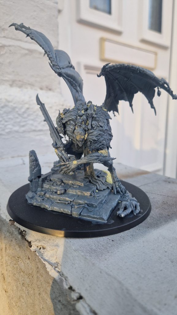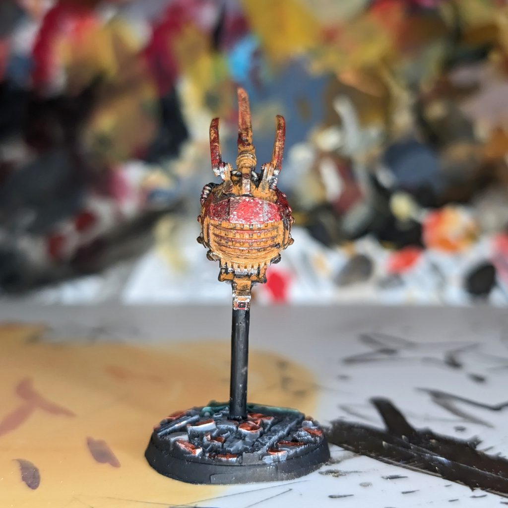Having exorcised a lot of traumas and insecurities with the various knights I’ve painted over the last couple of years, I picked up a set of chaos armigers (whatever they’re called), with the sole idea of having some fun with movement and disgust. The first completed is, pretentiously (of course!), called
