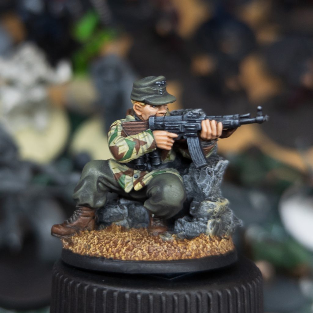 First off is the promotional miniature from this month's Bolt Action Compendium. First proper go at a model with a full Splittertarn Zeltbahn and I'd say it turned out beautifully!