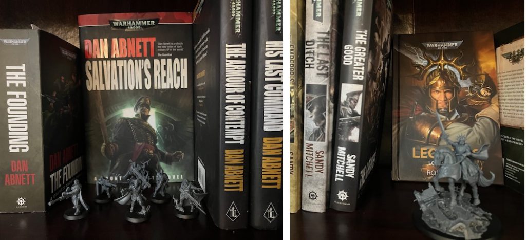 As one of the Goonhammer team's lore guys, much of the hobby work I'm doing involves the bookcase. I'll eventually tackle learning to paint, but for now here are some pics of my work in progress and general concept for the collection.